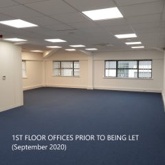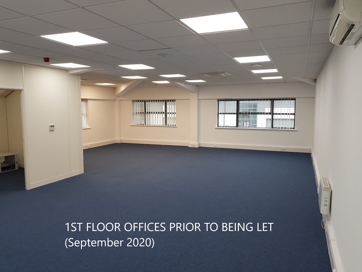 The ground floor area has a minimum eaves height of 3.45m and is served by an electrically operated loading door of approx. 3m x 3.4m. There are two ground floor wc’s. The first floor office space is currently provided with an open plan area and offices, all air conditioned.