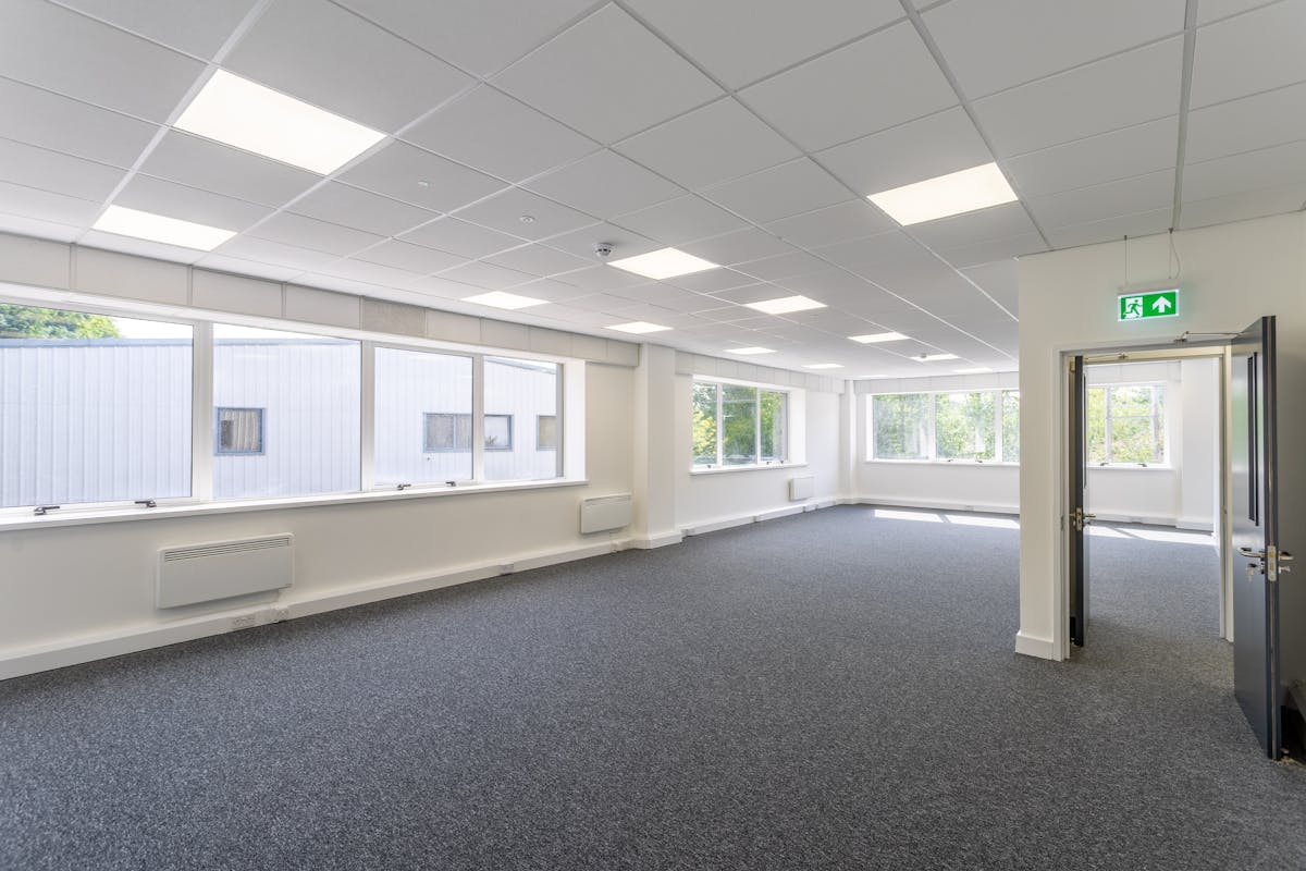 At first floor level there are well-presented offices, benefitting from carpeted flooring, suspended ceilings, and LED lighting.