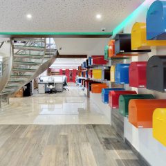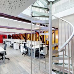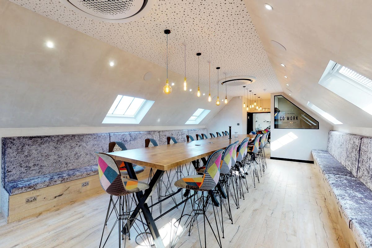 + Feature "phone box" style quiet pods for both telephone calls and quiet working.