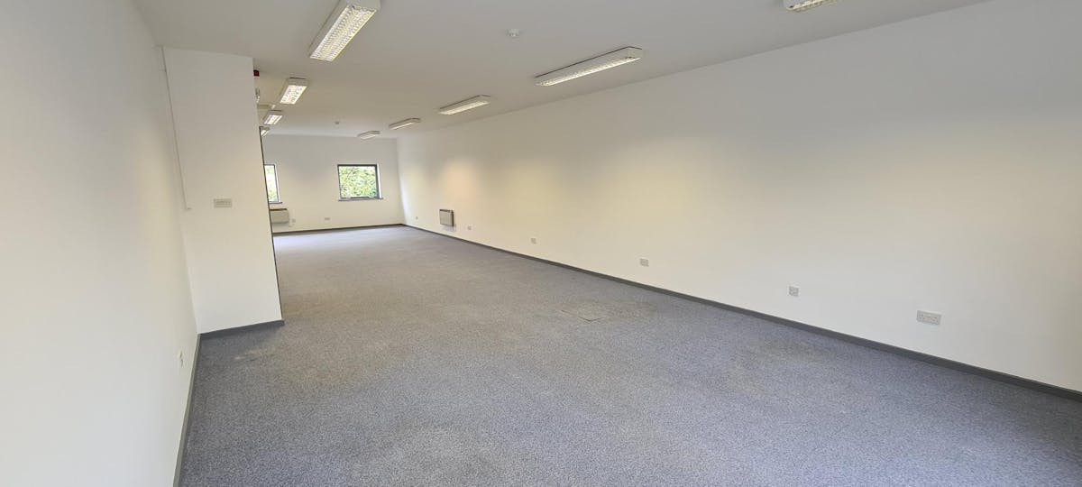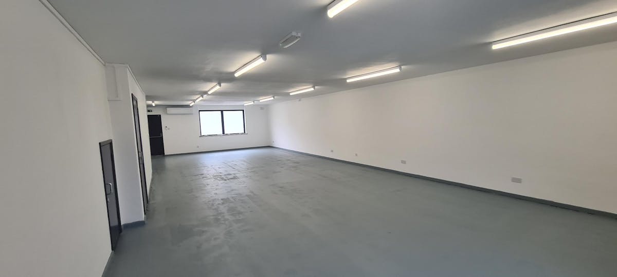 The property comprises ground floor E-class office/light industrial workshop with first floor offices benefiting from a toilet and kitchenette.