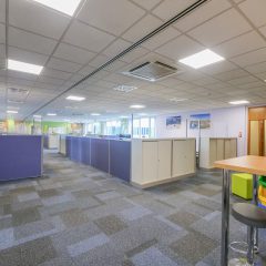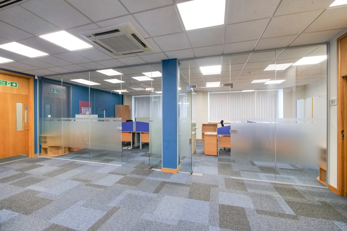 The property comprises ground and first floor offices, generally open plan in configuration and benefitting from a shared reception area, large double-glazed windows providing ample natural light, air conditioning, kitchen facilities, partitioned meeting rooms, and allocated car parking. The offices have the potential to be used for a variety of uses, subject to planning and occupy an easily accessible position on the estate close to Lidl, Starbucks and Greggs.