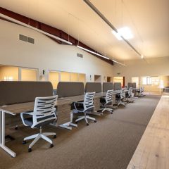 Private offices ranging in size from 2-8 people. The offices include underfloor heating, air conditioning and shared amenities including a kitchenette, print zone and private booths.