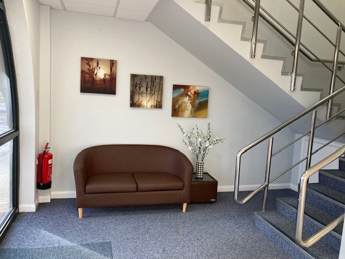 6 Lakeside Business Park is a modern semi-detached, two storey office building situated in an established business park location within a semi-rural setting. The first floor has recently been refurbished and provides high quality, predominantly open plan work space, with one separate meeting room. The ground floor is in the process of being refurbished. There is a pleasant kitchenette on each floor, and eacg floor comes with 6 allocated parking spaces, and one visitor space which is shared. There is also additional road parking along the main estate road. The offices further benefit from a pleasant waiting area both on the ground and first floor.
