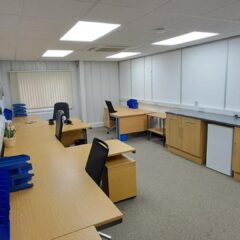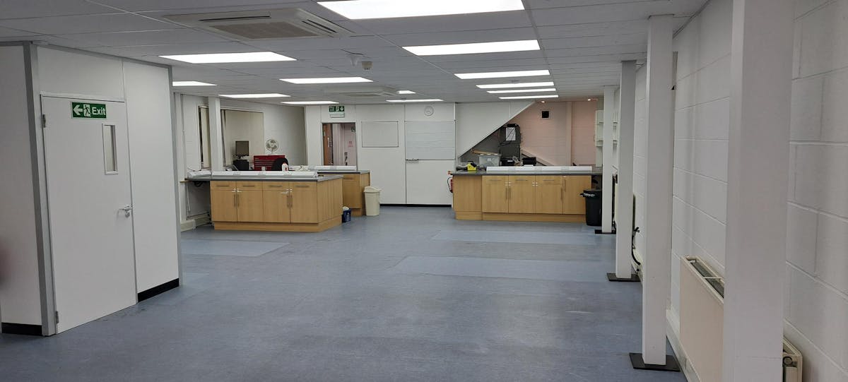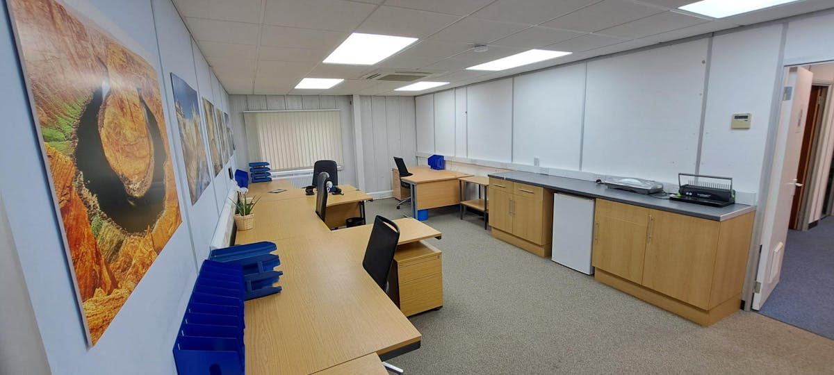 The Lakeside Business Park provides a modern development with a mix of industrial, high tech and conventional office properties all of brick construction in a pleasant lakeside setting. The subject property is a semidetached self-contained unit with accommodation over 2 floors. There is a roller shutter door at the front of the unit, with double loading doors directly behind this, leading into the main ground floor space. To the side of the loading door is a pedestrian door leading into a reception area. Stairs to the first floor offices / additional storage rooms are situated at the rear of the ground floor. The unit benefits from LED lighting throughout, AC for cooling , heating via gas fired radiators, 3 allocated parking spaces, plus a disabled access space directly to the front of the unit (with a further 12 shared spaces very close by) and an EV charging point. There are double glazed windows along the side of the unit at both ground and first floor, so the unit further benefits from natural light.