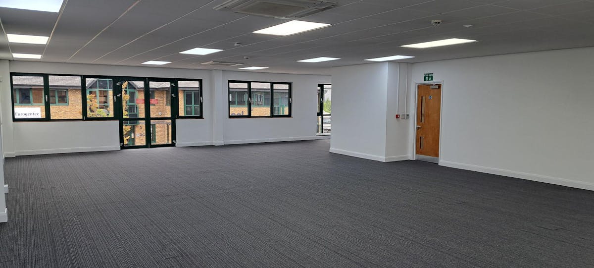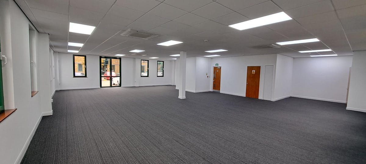The property comprises a semi-detached two-storey brick-built office/high-tech unit with a traditional pitched tiled roof. Originally constructed as a high-tech unit, the ground floor is currently provided as open-plan office space, while the first floor offers offices with suspended ceilings, recessed LED lighting, radiator heating with additional comfort cooling, and raised access flooring.