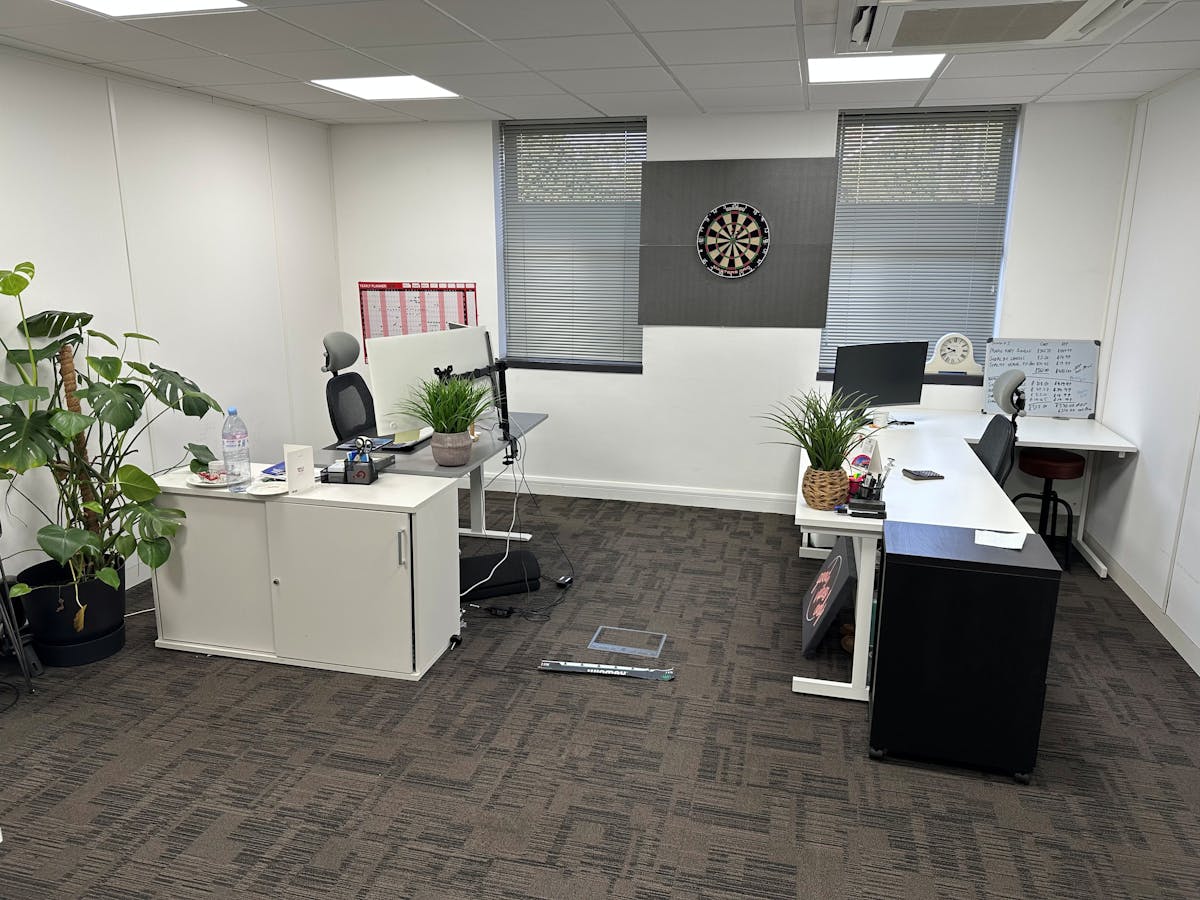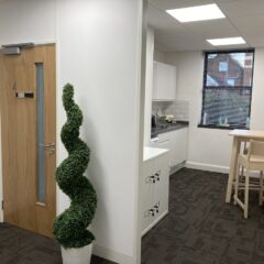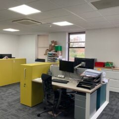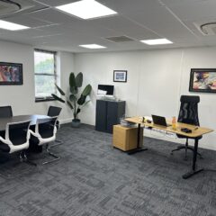 Knightway House is a very well presented detached modern office building, providing office accommodation of varying sizes across three floors. Suite 5 is located on the second floor and benefits from good natural light, heating and cooling air conditioning, raised floors and LED lighting. There is a shared attractive kitchen along with shared WC’s and a shower. Suite 5 has 2 allocated parking spaces.