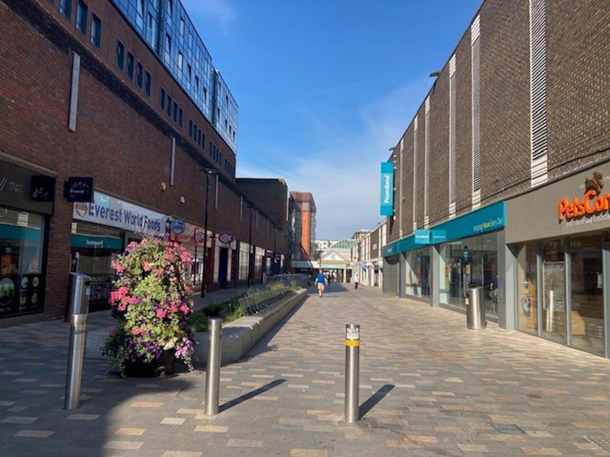 4 Princess Way is a detached two storey building. The ground floor retail unit is presented in good decorative order, with LED Lighting and has an excellent double frontage onto what must now be considered Camberley’s prime shopping street, with the recent addition of B&M and Poundland, along with a large Specsavers and other well known shops, bringing much footfall to the area.
