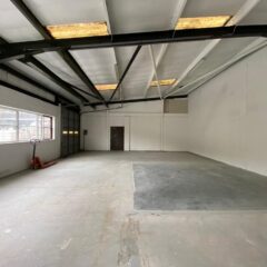 The unit benefits from a kitchenette and WC, with the remainder forming an open plan full-height warehouse with concrete flooring.