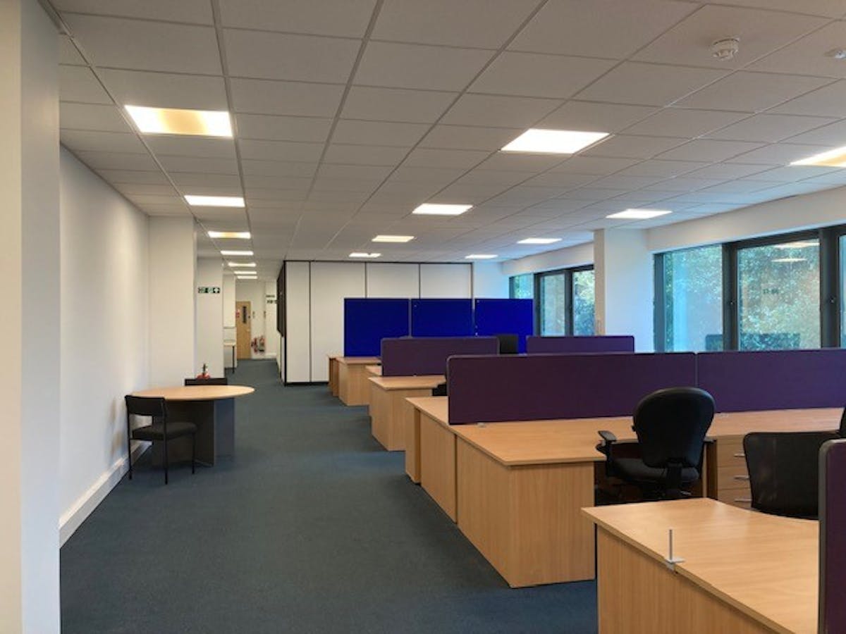 The office at 2 Nexus Park provides predominantly open plan office space, with a good size meeting room. The offices are currently furnished, however removing the furniture is not an issue if unfurnished is preferred. The entrance to the office is via a very smart ground floor lobby. The offices have windows along the front elevation which overlook the neighbouring meadow. The office has LED lighting throughout and is heated by gas fired radiators. There is a small kitchenette which is solely for the first floor office use.