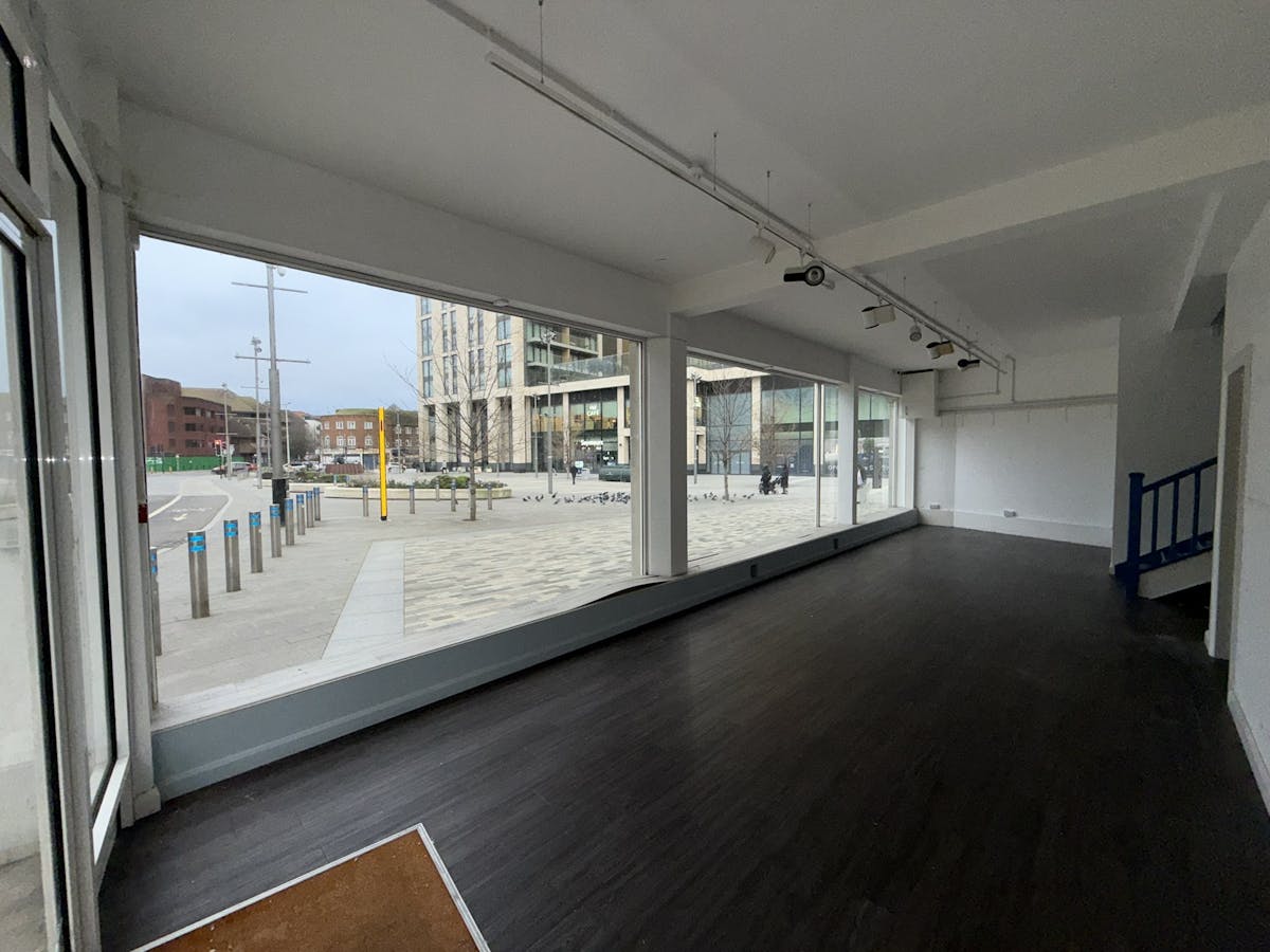 The dual aspect property comprises a self-contained ground floor retail unit being prominently positioned to face both Victoria Square and Woking High Street and is adjacent to Commercial Way. Internally, the premises provides a mainly open-plan sales area which boasts floor to ceiling windows and ancillary accommodation towards the rear.