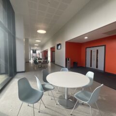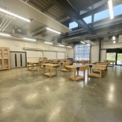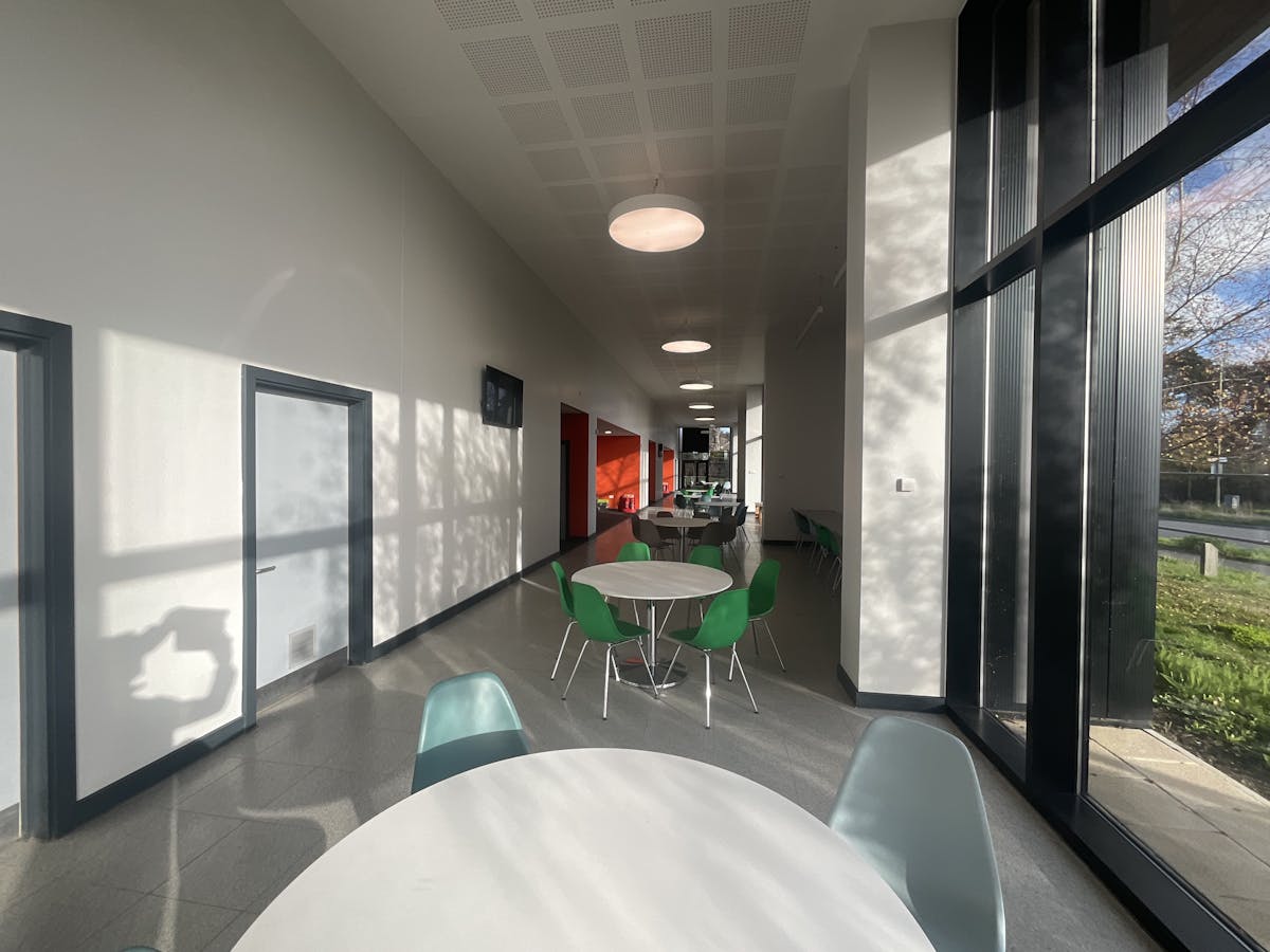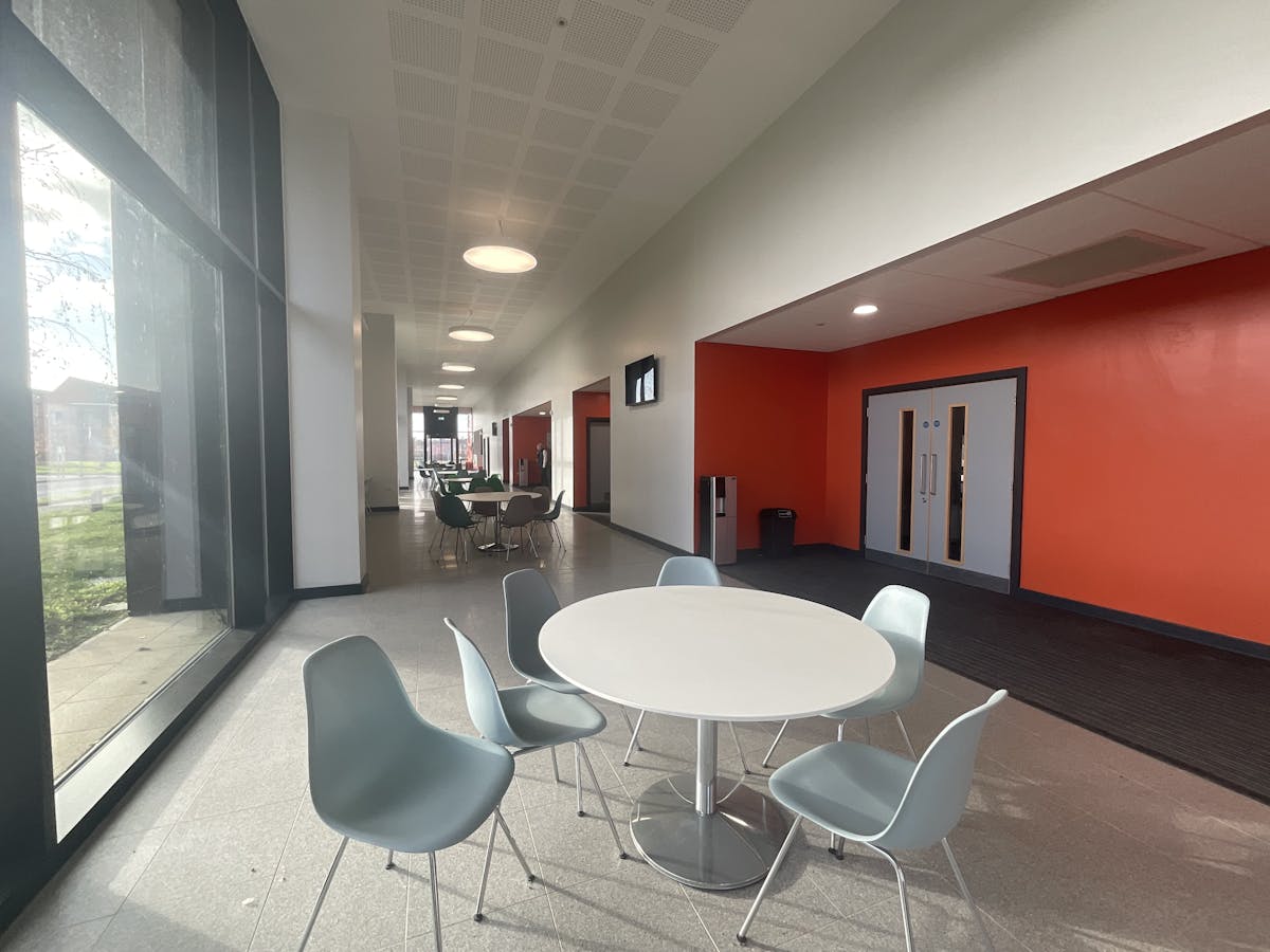 All classrooms and workshops are fitted with a large wall mounted interactive screen. Tables and chairs are provided to classrooms and the concourse.
