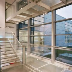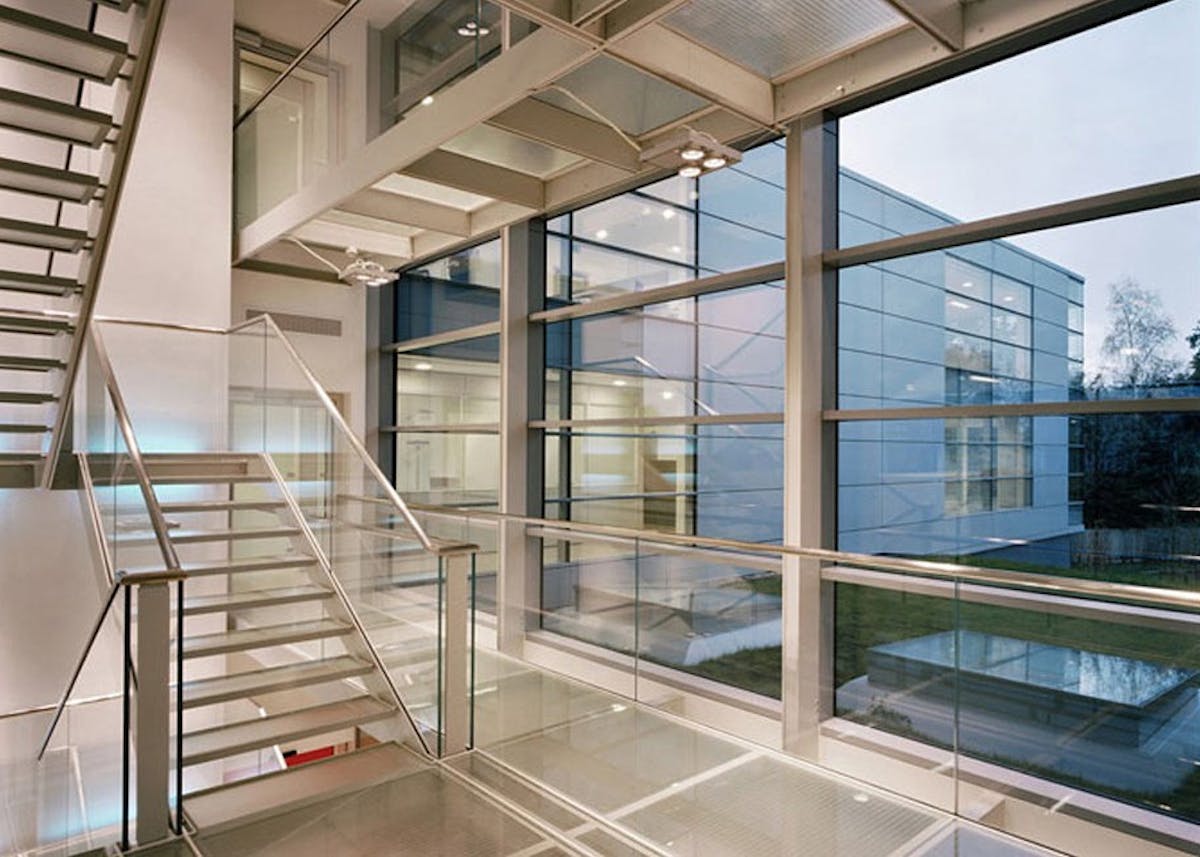 The impressive entrance hall behind full height glazing leads to a central core with feature staircase and passenger lift. To the rear of the office there is substantial external break out space.