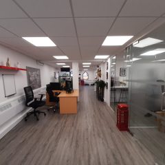 The available space forms the whole of the 1st floor of a 4 storey building, above a single retail unit on the ground floor. The property is quite individual and modern in appearance, using traditional building materials such as brickwork underneath a pitched roof with artificial slate coverings. The accommodation offers exceptional natural light with double glazed windows across the front and rear elevations, incorporating feature bay windows. The accommodation is partitioned to form an office, a meeting room, a kitchen and a tea tasting room based on outgoing tenant requirements. This can of course be changed (fully or in part) subject to the requirements of the incoming tenant. WC's are in the communal space of the building.